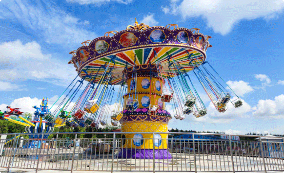 Аттракционы: свадебная карусель, седьмое небо, аттракцион мятник, башня свободного падения, американские горки и т. д.